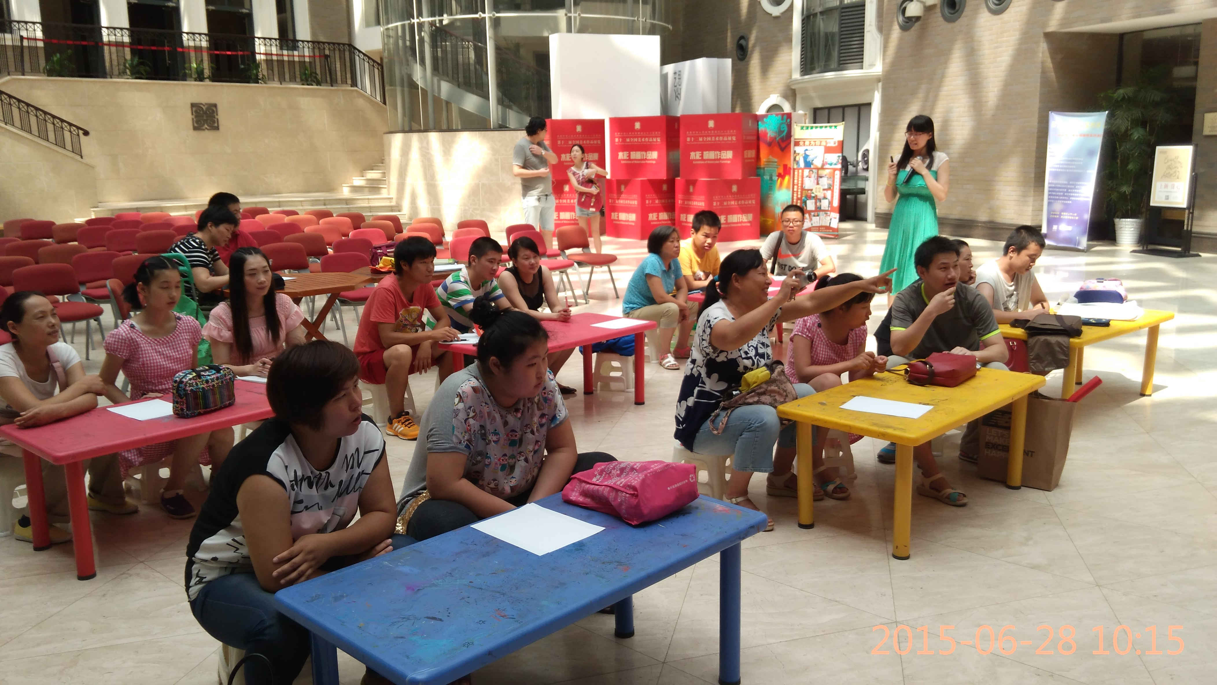 6月28日(周日)上午10:00,我公司志愿者團隊一行來到武漢市美術館,與自閉癥兒童家長共同舉辦的“藝術點亮星星的孩子”——關愛自閉癥兒童系列活動?;顒佑晌錆h美術館主辦,旨在為自閉癥孩子展現自我、表達情感、發揮潛能、融入社會搭建平臺,促進他們的康復治療,并向社會倡導“了解、尊重、包容”的友善氛圍。