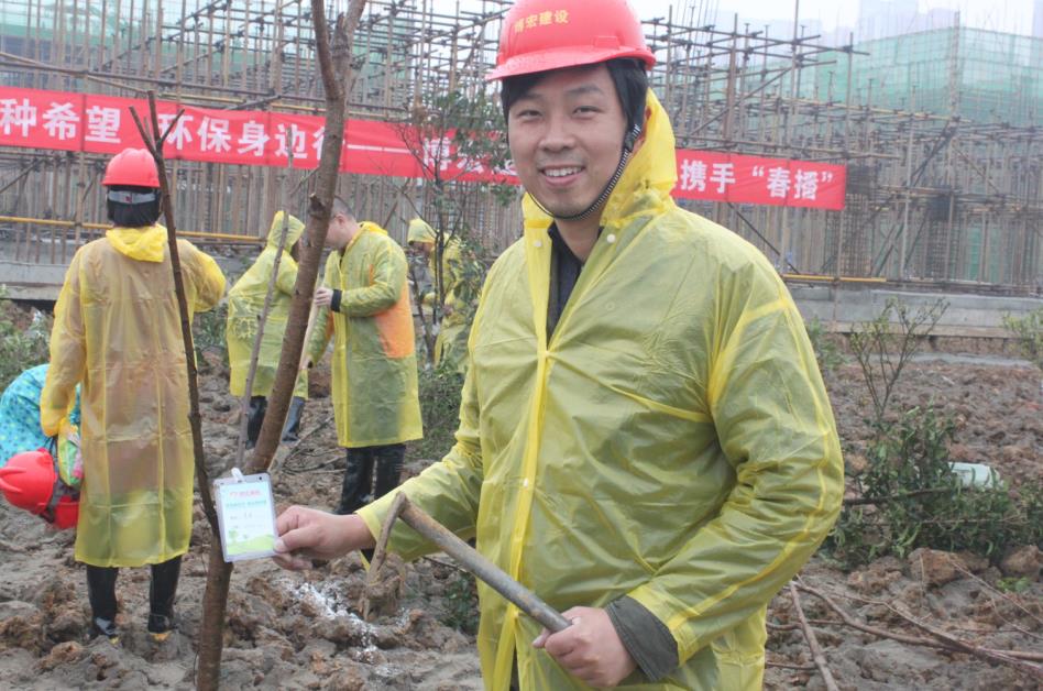 在公司領(lǐng)導(dǎo)宣讀《“春播”環(huán)?;顒映h書》,項目經(jīng)理交底植樹注意事項、種植方法后,大家按照預(yù)先分組情況,由組長帶領(lǐng),有序領(lǐng)取植樹相關(guān)物資,集體前往種植區(qū)域開展植樹、種草?;顒又?,集團公司領(lǐng)導(dǎo)與博宏班子成員也積極參與到動手隊伍中來,親手帶頭栽下一棵棵樹苗,大家有說有笑,你一鍬,我一鏟,你扶樹,我刨土,大家擼起袖子揮手大干,眼看著一排排樹苗就在大家合作下迅速站立起來。天公作美,一場及時小雨為新栽樹木送來雨水滋潤,三月的微風里,一片新綠為四新中學(xué)工地帶來了勃勃生機。短短2個小時,在大家的積極合作中,700余平米的種植綠化任務(wù)順利完成,大家積極在綠色心愿卡上寫下對綠色環(huán)保、公司發(fā)展的美好祝福,并掛在自己所栽樹苗上,活動在歡笑聲中開始也在歡笑聲中緩緩落下帷幕。