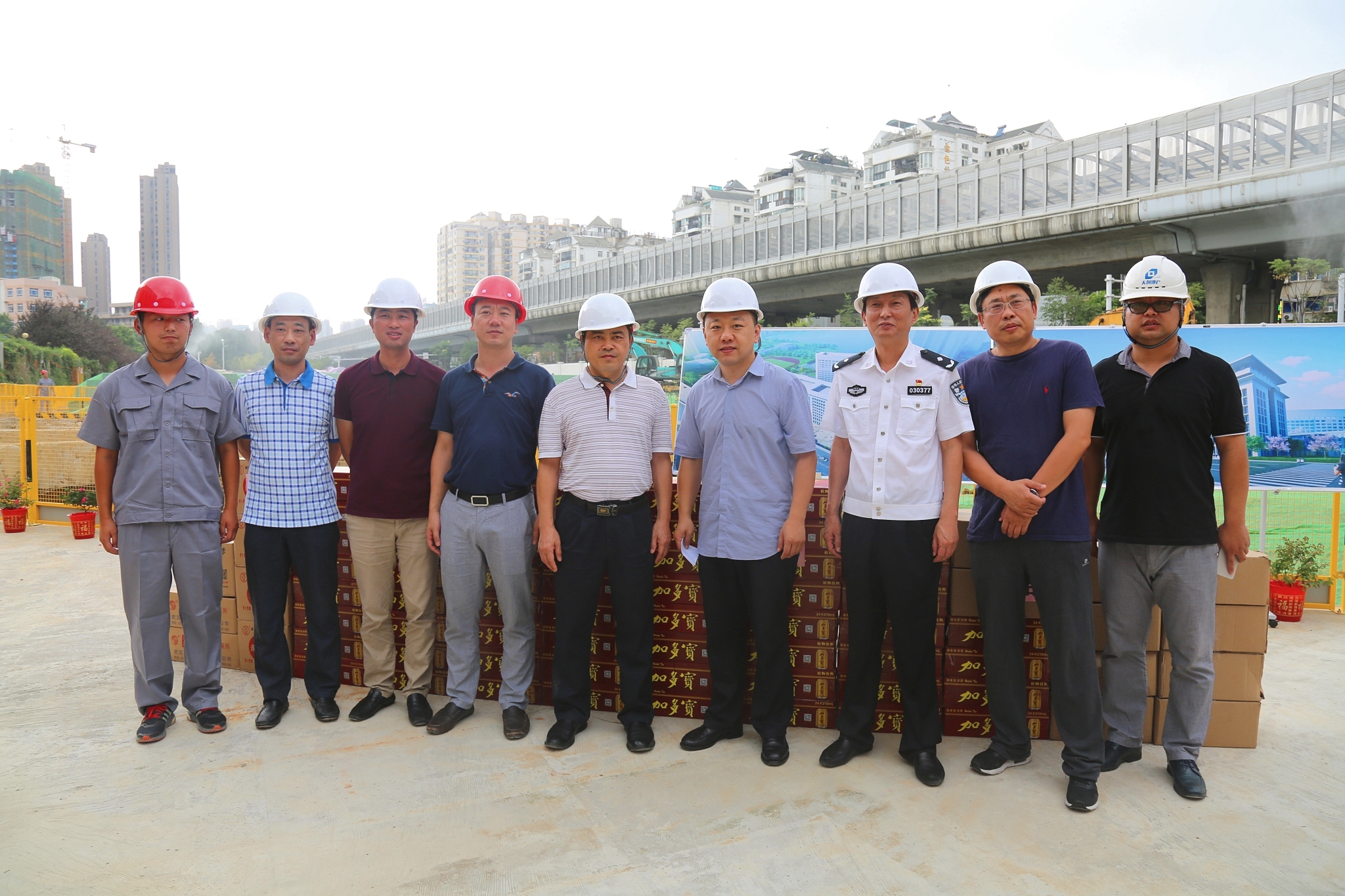 入伏以來,武漢持續(xù)高溫,近日來氣溫更是突破40度大關(guān),7月31日下午,漢陽區(qū)委副書記閻磊、區(qū)委常委張才勝、副區(qū)長(zhǎng)胡勇等一行冒著高溫走訪慰問了漢陽市政博宏公司在建工地,對(duì)在高溫下堅(jiān)守建設(shè)崗位的基層施工人員表示關(guān)心和慰問,并送來了消暑降溫用品,漢陽市政黨委書記兼董事長(zhǎng)嚴(yán)悌文、漢陽市政博宏公司總經(jīng)理錢濤等陪同。