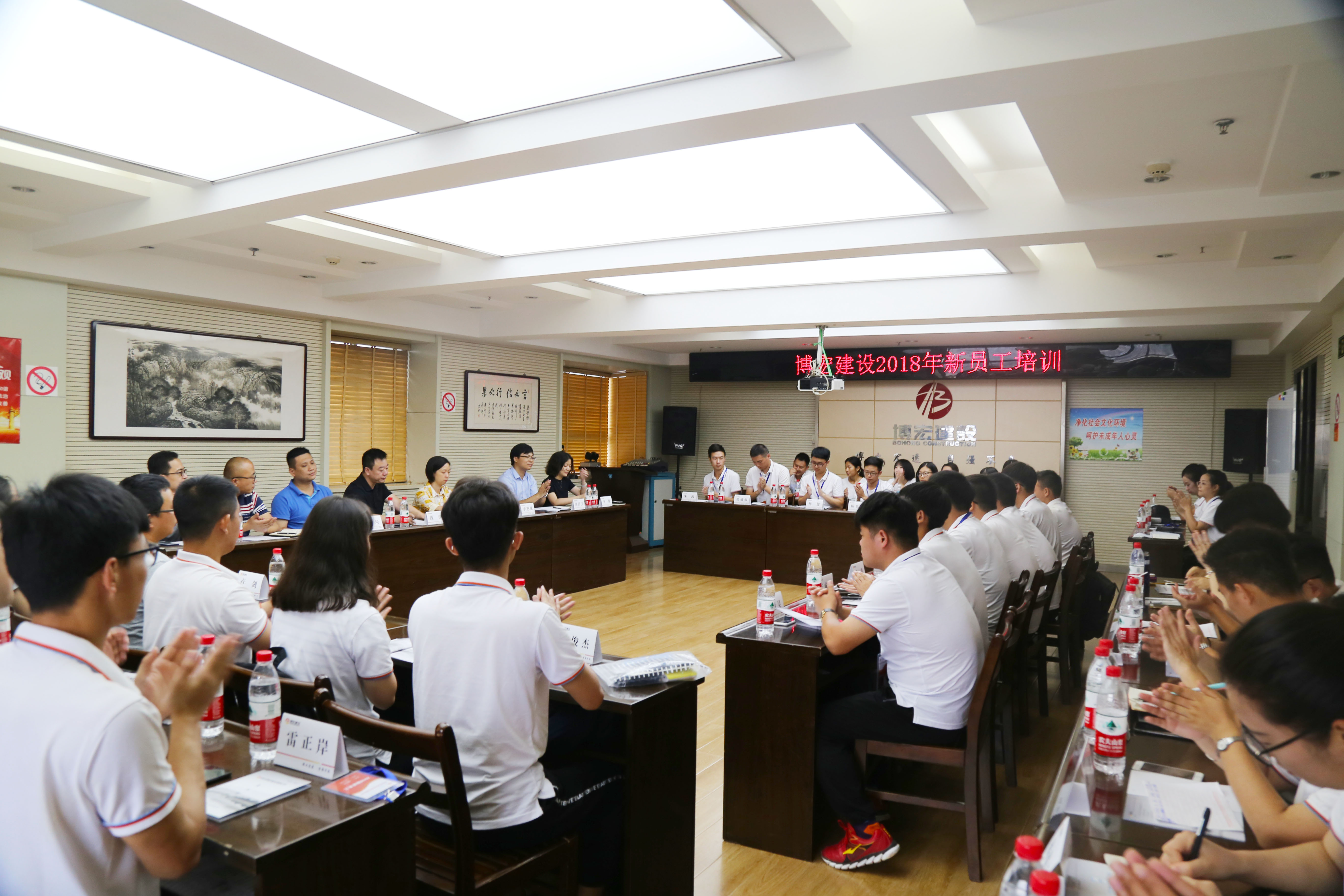 ??? 7月6日,武漢博宏建設有限公司組織開展了2018屆新員工見面會及崗前培訓,培訓歷時一天,博宏建設領導班子、各職能部門負責人及代表出席了此次活動。