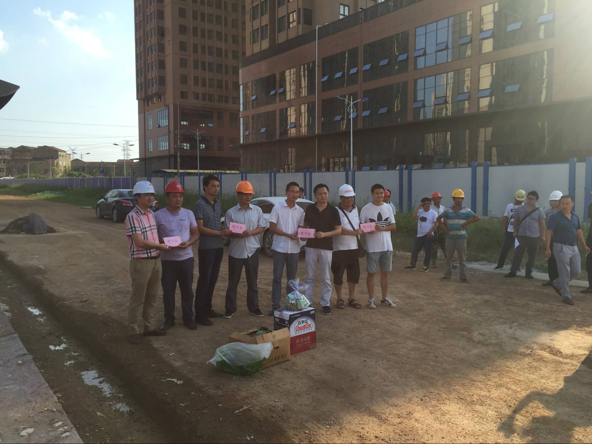 7月16日,漢陽區建設局、建管站、武漢市建元建設工程項目管理有限公司、漢陽市政建設集團等開展聯合高溫慰問,將西瓜、礦泉水、解暑藥物及慰問金等送到項目一線職工手中。
