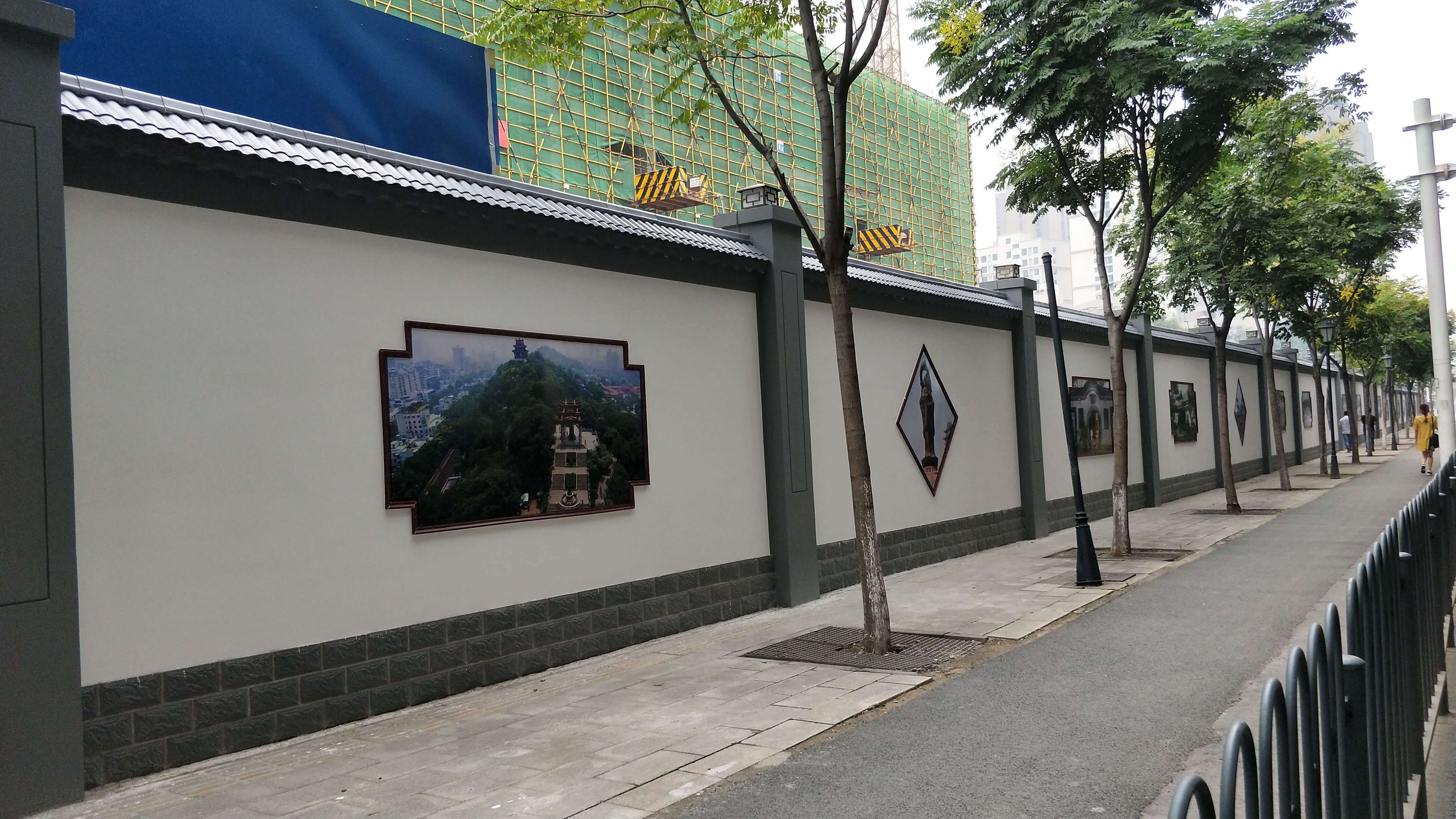 項(xiàng)目建設(shè)伊始便針對(duì)現(xiàn)場(chǎng)安全文明布置采取了專項(xiàng)措施,按照楚天杯的標(biāo)準(zhǔn)實(shí)施建設(shè)。工地圍墻方面,項(xiàng)目施工現(xiàn)場(chǎng)多采用磚砌體圍墻與“古典中國(guó)風(fēng)”裝飾,裝飾材料均采用環(huán)保節(jié)能材料,高度高于2.5m,墻體安全牢固無(wú)破損,且進(jìn)行了美化、亮化、彩色噴繪畫(huà)面及裝訂古典園林建筑畫(huà)框妝點(diǎn)。定期對(duì)宣傳墻、圍擋進(jìn)行檢查、清洗和刷新。有歪斜破損的及時(shí)更換,保證其干凈、整潔、無(wú)亂涂、亂寫(xiě)、亂張貼現(xiàn)象。