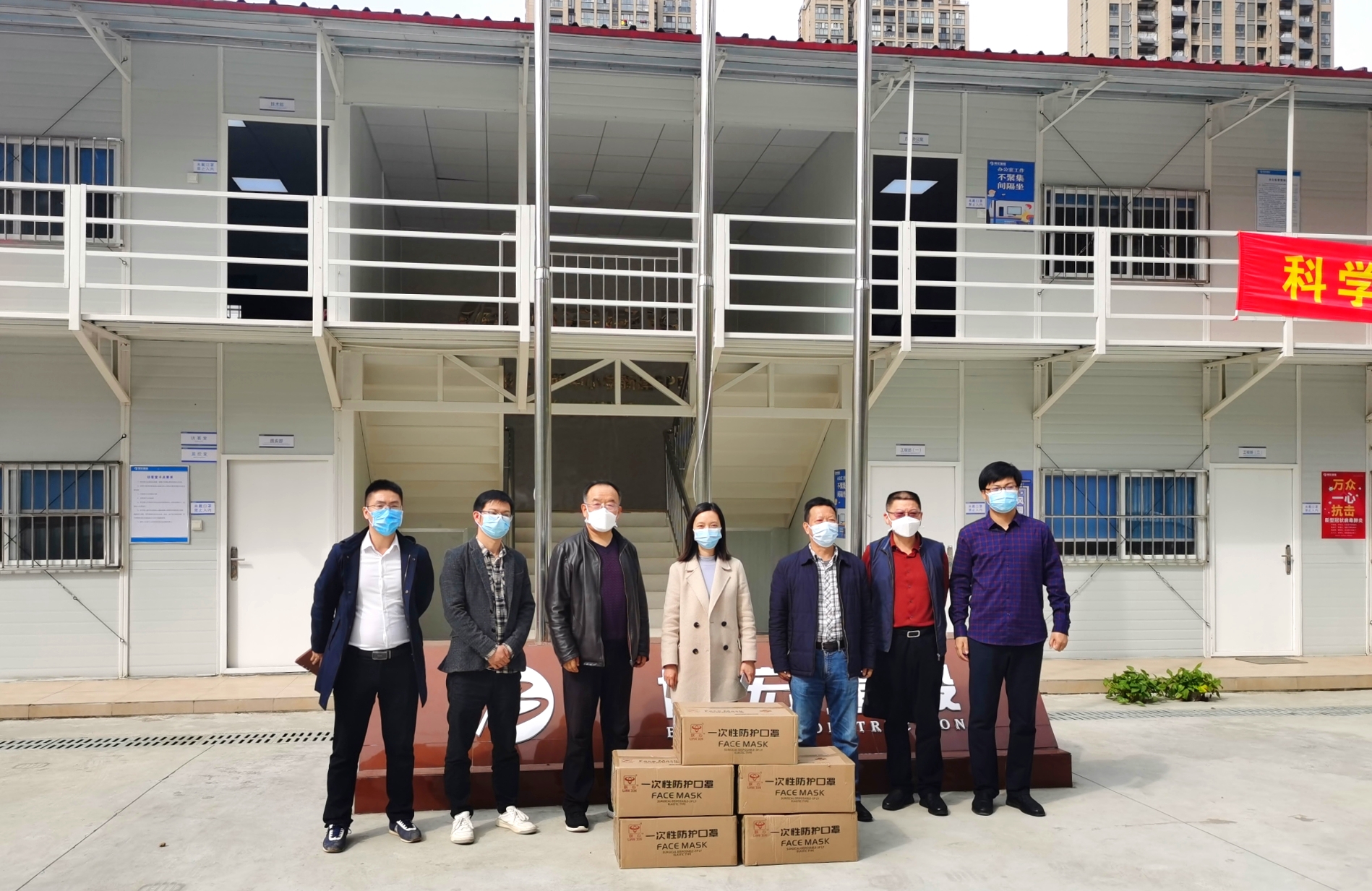 4月14日下午,武漢市建筑業協會副會長李淼磊、秘書長李紅青、協會質量管理工作委員會秘書長陳剛結隊來到武漢博宏建設有限公司龍陽中學、四新中學項目現場,開展復工復產防疫慰問和竣工項目質量管理情況調研,并送來一批一次性醫用防護口罩。