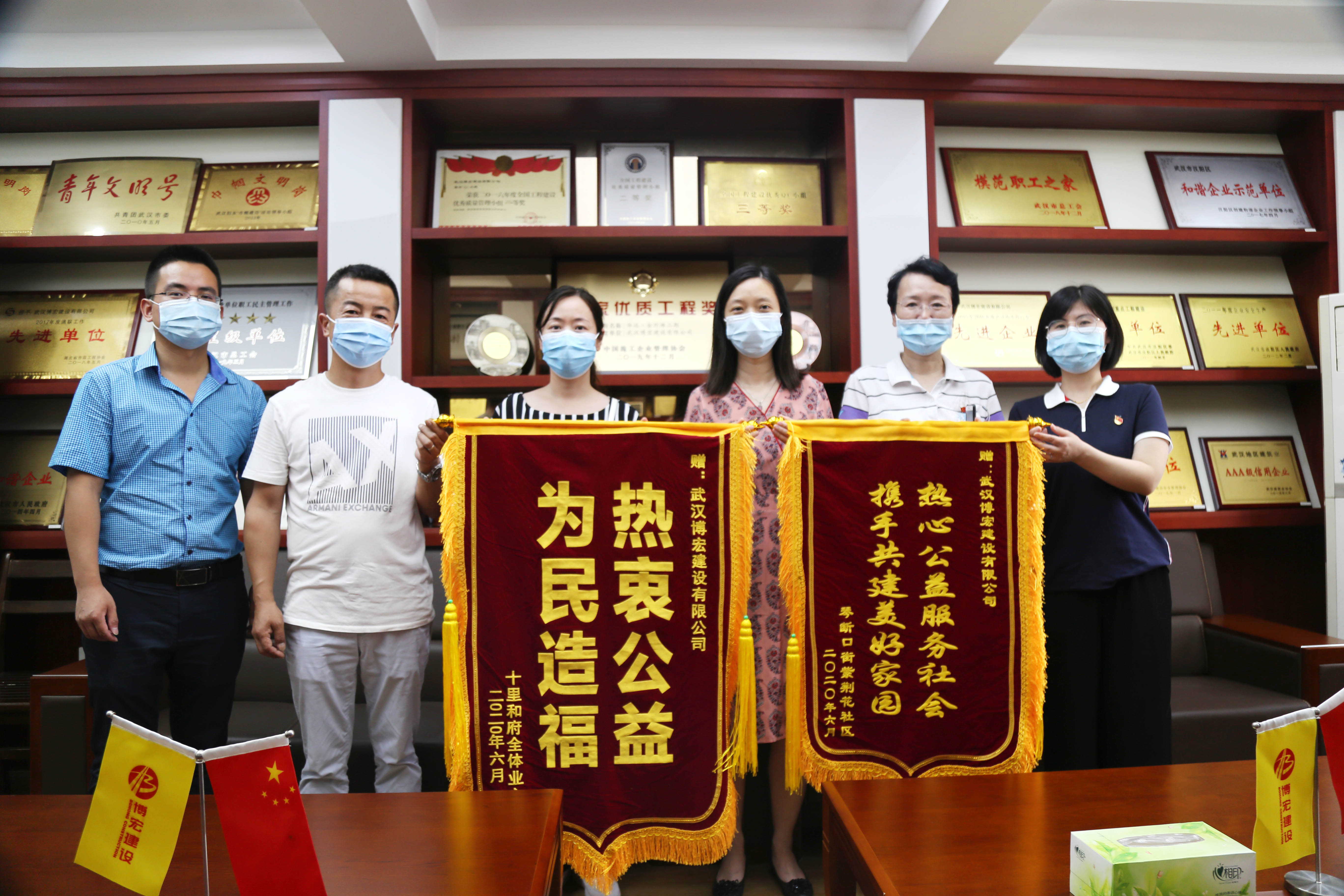 ?? 6月9日上午,漢陽區委宣傳部代表和漢陽區紫荊花社區、十里和府小區物業代表結伴而來,為博宏建設送來兩面錦旗,感謝博宏建設在改善社區工作環境,服務社區公益事業中做出的努力。據悉,十里和府小區一號樓一樓裝修老舊,地面不平,居民出行不便,博宏建設裝飾裝修項目部在周邊施工時,接到相關指示,先后派出6人歷時6天,一并對該區域近300平米進行了地磚更換,裝修效果得到了居民和社區的高度認可。