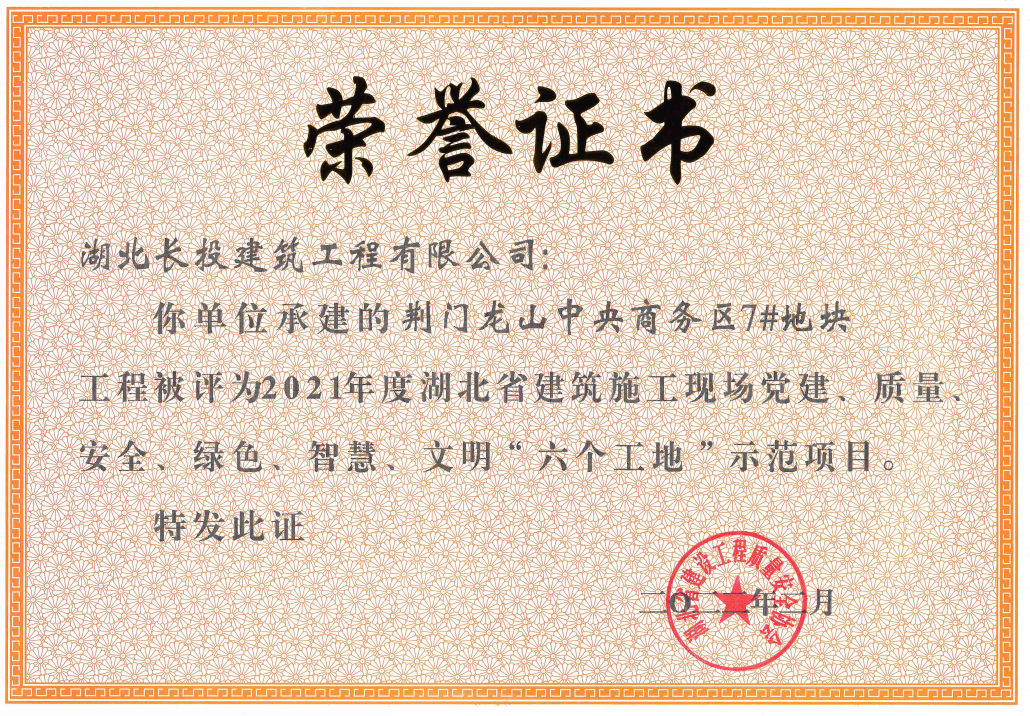 近日,2021年度湖北省建筑施工現場黨建、質量、安全、綠色、智慧、文明“六個工地”評比結果正式公布,全省共計97項工程被評為示范項目,博宏建設新建商業服務業設施項目(中南科研設計中心)和博宏建設旗下合資公司湖北長投建筑工程有限公司承建的荊門龍山中央商務區7#地塊項目雙雙獲獎。