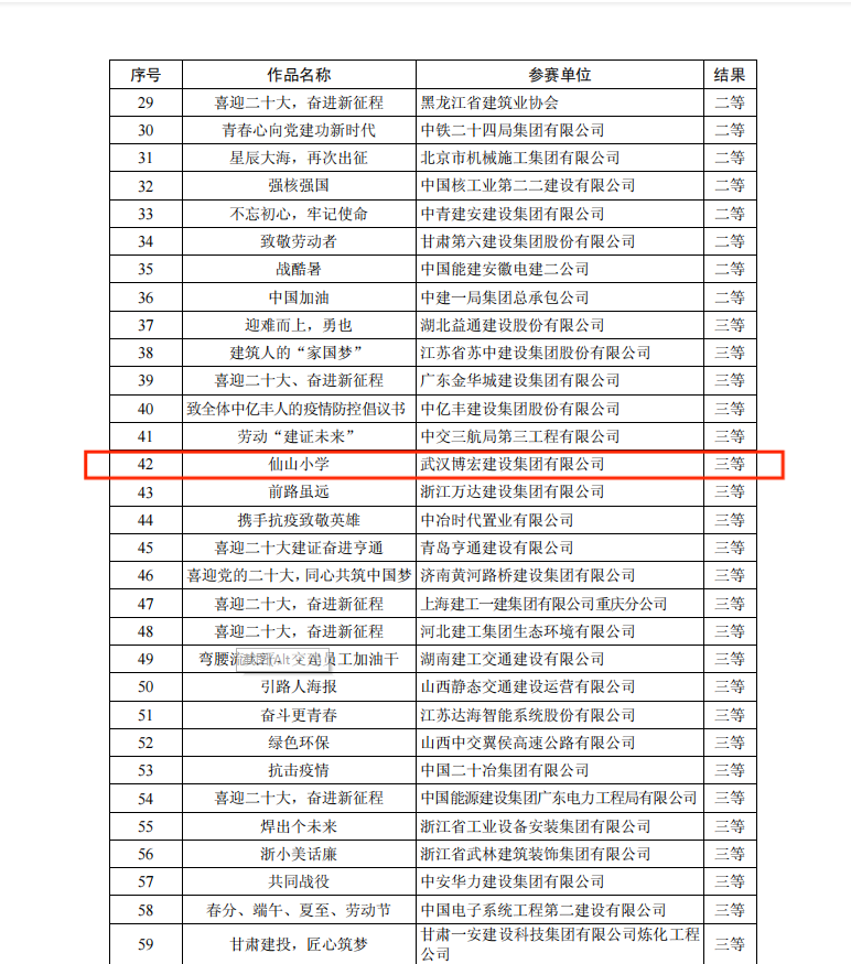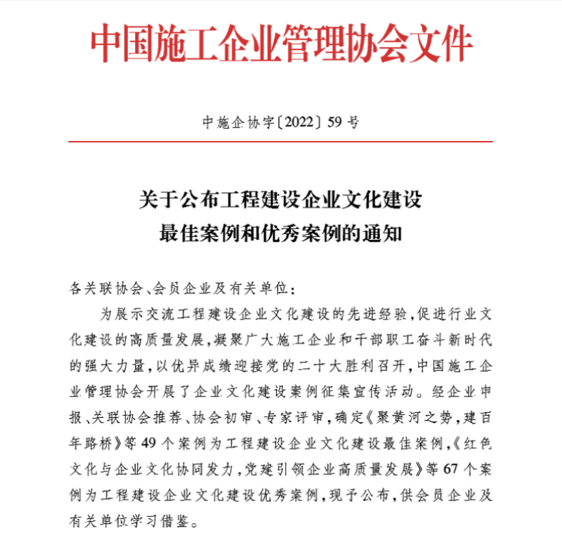 近日,中國施工企業(yè)管理協(xié)會發(fā)布“關(guān)于公布工程建設(shè)企業(yè)文化建設(shè)最佳案例和優(yōu)秀案例的通知”和“關(guān)于公布2022年工程建設(shè)企業(yè)文化作品競賽結(jié)果的通知”,經(jīng)過內(nèi)容審查、專業(yè)評審等環(huán)節(jié),博宏建設(shè)集團《創(chuàng)新企業(yè)文化建設(shè) 凝聚企業(yè)發(fā)展新動能》案例獲評工程建設(shè)企業(yè)文化建設(shè)優(yōu)秀案例;仙山小學(xué)海報獲評海報作品競賽單元三等獎。