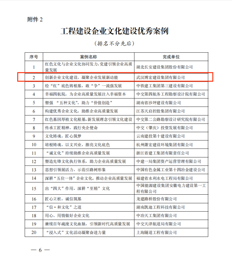 本次榮譽的獲得是對公司積極推進企業(yè)文化建設(shè)工作成果的肯定,未來博宏建設(shè)集團將繼續(xù)全面做好企業(yè)文化建設(shè)各項工作,凝聚全體員工的干事熱情,努力打造競爭型、管理型、質(zhì)量型的一流房建企業(yè)。