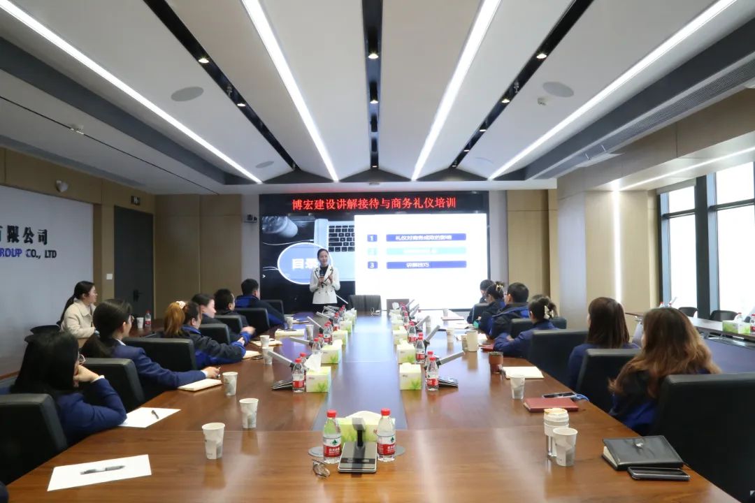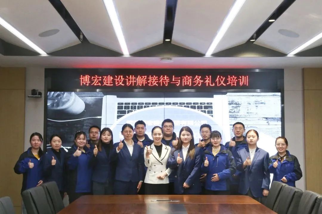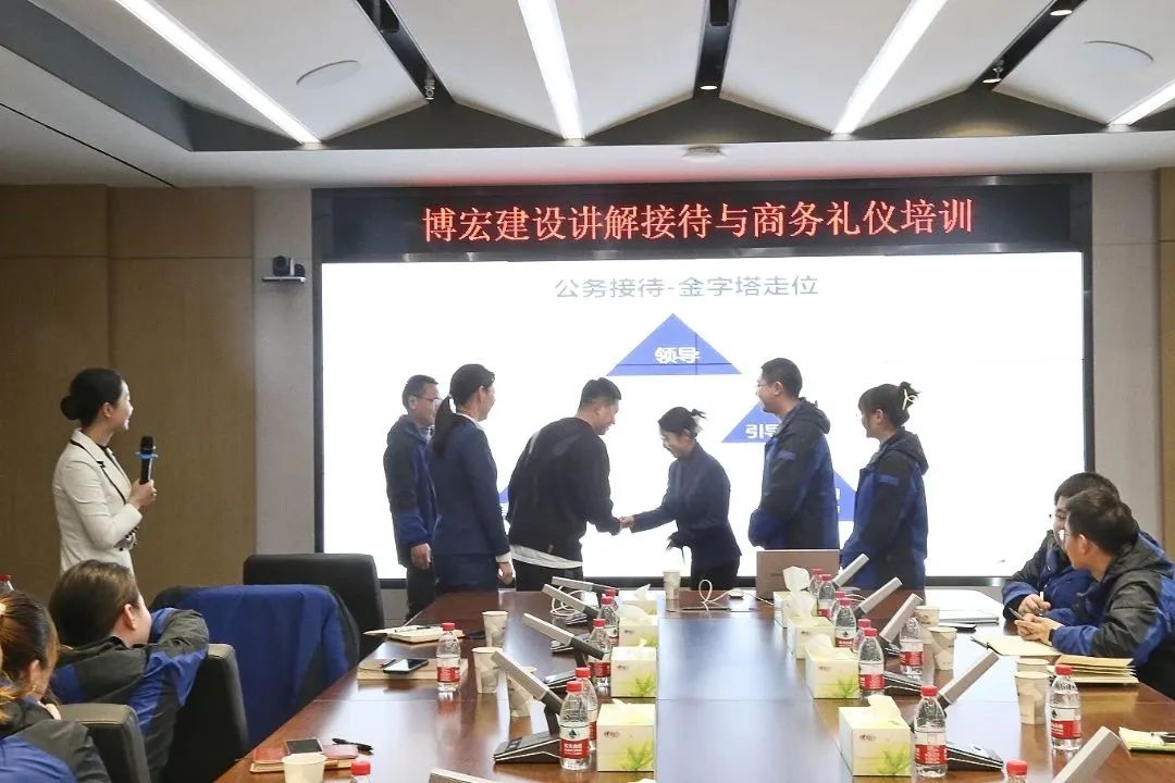 為提高公司會議及接待水平,提升員工綜合素質,塑強公司品牌形象。2月9日下午,博宏建設集團在會議室組織開展了以“接待與商務禮儀”為主題的專題培訓,公司特邀知創禮學院首席培訓導師、項目策劃師安娜老師授課。