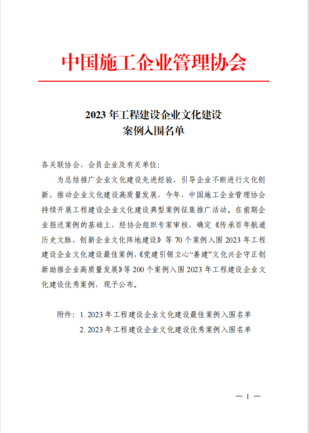 近日,中國施工管理企業協會發布2023年全國工程建設企業文化建設最佳案例、優秀案例,由博宏建設集團申報的《文化賦能顯動力 創新融合促發展》獲評“企業文化建設優秀案例”。