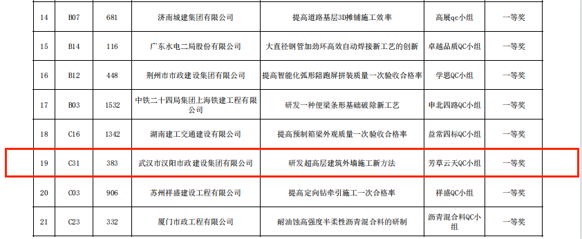 近日,中國建筑業協會、中國施工企業管理協會與中國市政工程協會工程建設質量管理小組活動成果大賽獲獎名單陸續出爐,基于中南科研設計中心建設項目現場情況總結出的《施工電梯基礎支撐體系的研制》、《提高鋼結構對接焊縫驗收合格率》與《研發超高層建筑外墻施工新方法》3項QC成果榮獲國家級獎項。