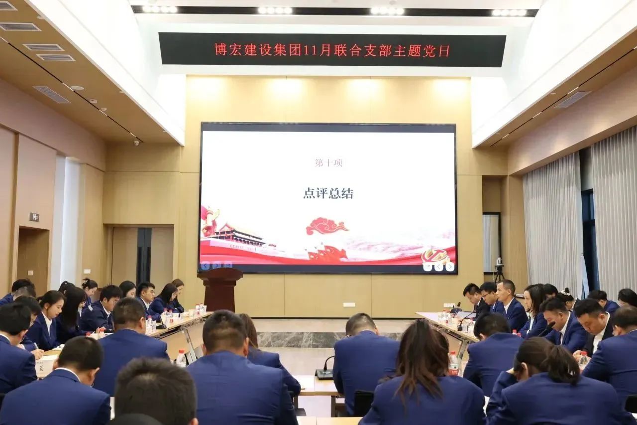 為深入學習貫徹習近平新時代中國特色社會主義理論,激發黨員干部的創新精神和責任意識,凝聚奮斗力量,11月24日下午15:00,博宏建設集團組織召開了“以學鑄魂強黨性,以行踐知促發展”十一月聯合支部主題黨日,博宏建設集團第一、二黨支部全體黨員參與活動。