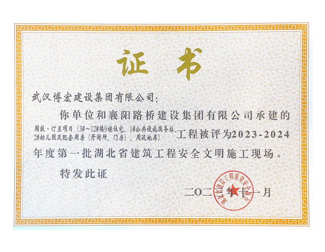 此次,公司8項工程獲此殊榮,是對博宏建設集團品牌實力的認證,更是鞭策博宏人載譽前行的動力。未來,博宏建設集團將繼續高標準、嚴要求做好安全文明工作,不斷提升安全文明施工標準化水平,打造更多優質工程、放心工程、精品工程,為公司高質量發展提供堅實保障,為拓展城市幸福空間作出積極貢獻!