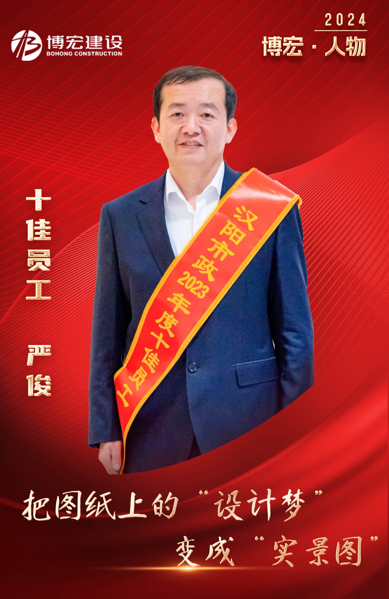 2021年4月,嚴俊闊別了工作17年的設(shè)計院,他懷揣著“我想知道我的圖紙是怎么變成現(xiàn)實”的憧憬與期待,加入博宏建設(shè)集團,并在接下來的日子里貢獻著屬于自己的智慧和力量。